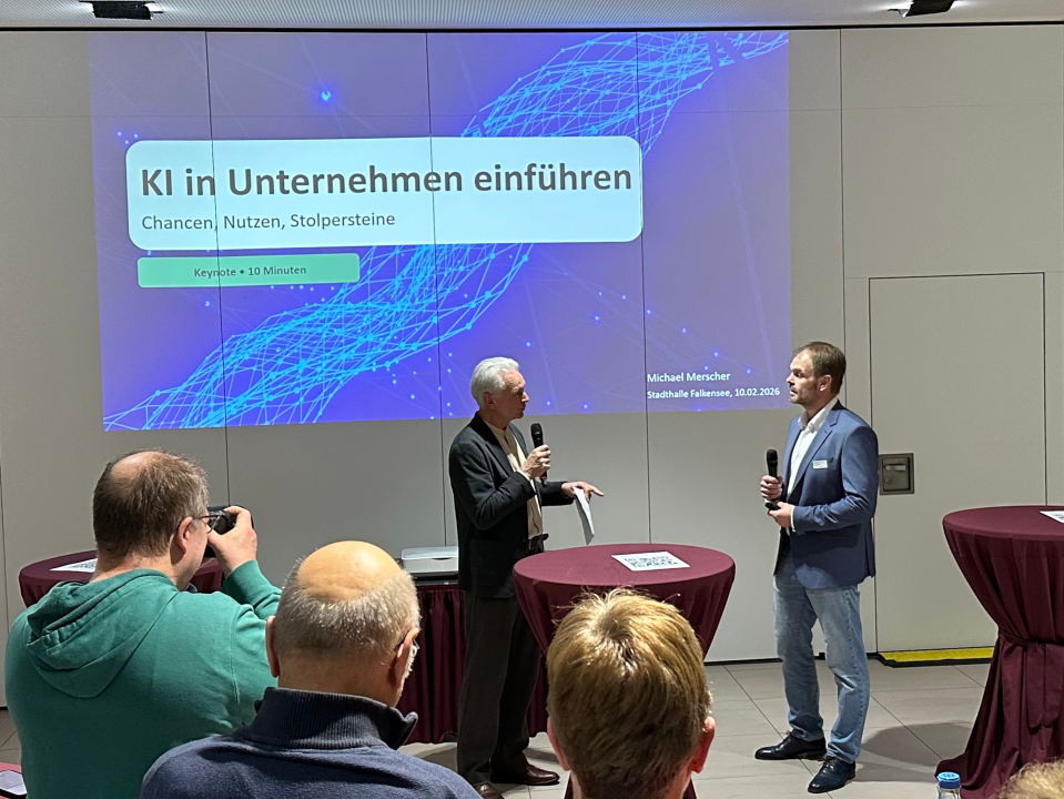Gestern ist in der Stadthalle Falkensee die Veranstaltungsreihe „KI? Ganz praktisch! Lösungen für den Mittelstand“ gestartet. Wir haben uns gefreut, dass unser Mit-Gründer Michael Merscher, derzeit noch Technischer Leiter bei Lunos, bei der Auftaktveranstaltung als einer der Vortragenden dabei war.Die Reihe wird von der Stadt Falkensee organisiert und soll lokalen Unternehmern Orientierung geben. Mehr zur […]